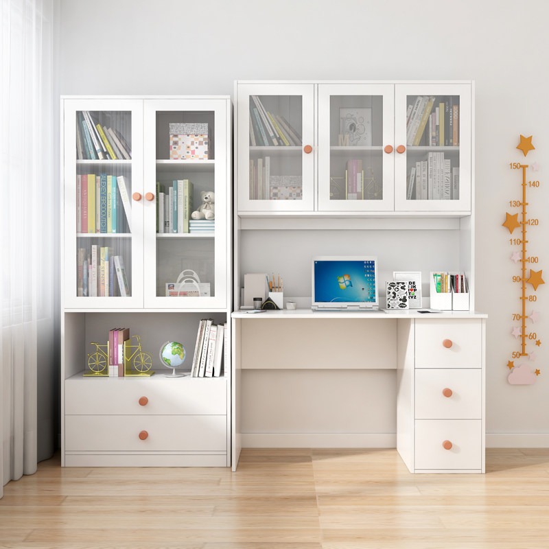 可比熊实木儿童书桌书柜一体男孩女孩写字桌家用书房小学生学习桌