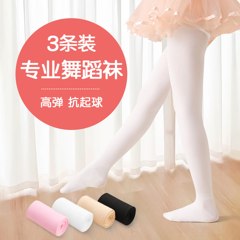 女童舞蹈袜春秋夏季薄款丝袜儿童连裤袜白色打底裤袜跳舞练功专用