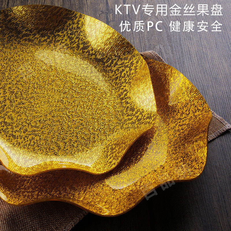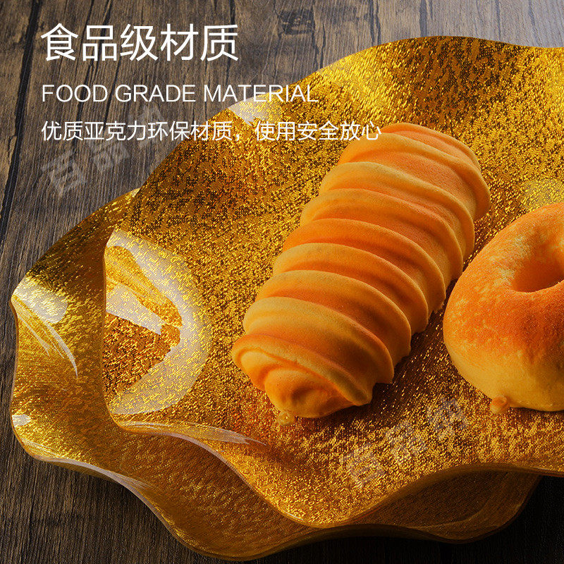 亚克力塑料金色盘子金丝果盘圆形盘水果盘公司酒店餐厅用创意高档