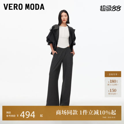 Vero Moda休闲裤2025秋季新款松紧腰头宽松直筒裤休闲3253PL029