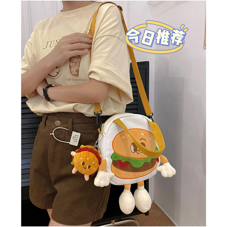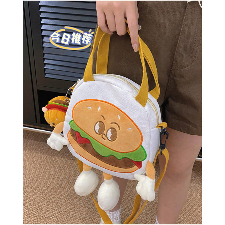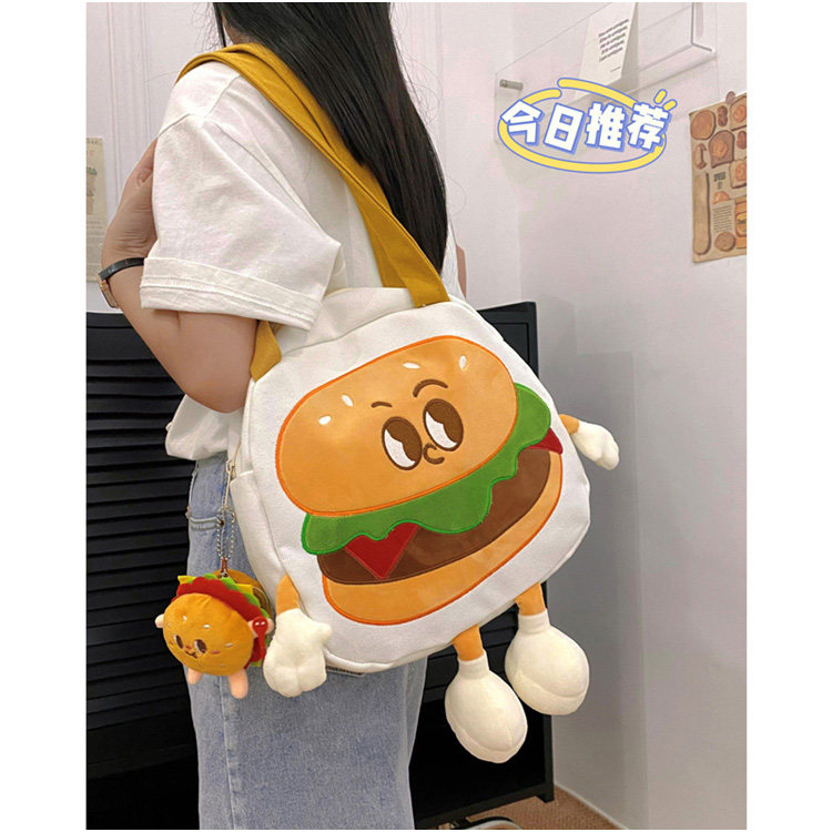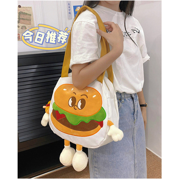 GFSN卡通风汉堡包女帆布包可爱个性单肩斜挎包大容量