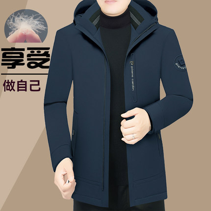 冬季男装加厚鹅绒羽绒服中年男士可脱卸双层内胆外套宽松版爸爸装