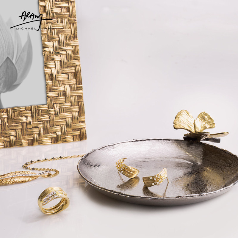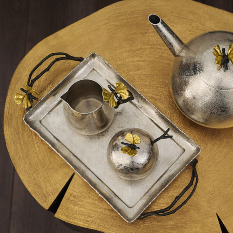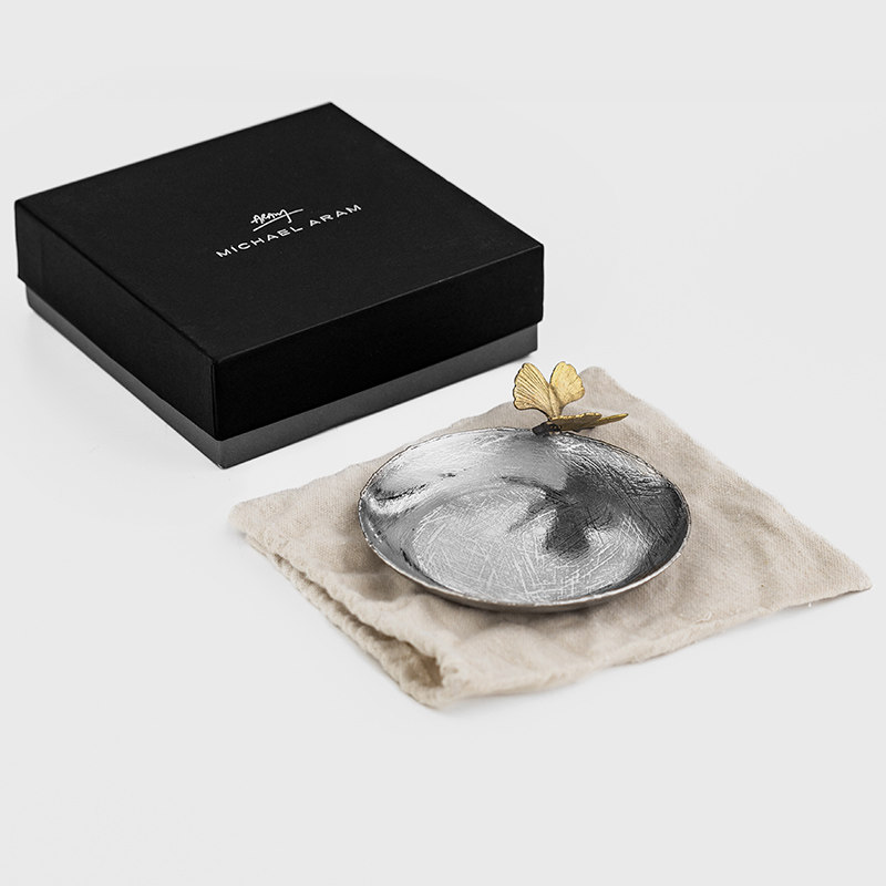 美国Michael Aram椭圆托盘不锈钢轻奢金属银杏收纳盘点心盘果盘