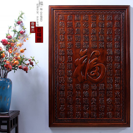 东阳木雕挂件香樟木头雕刻画工艺品中式客厅艺术室内装饰品百福图