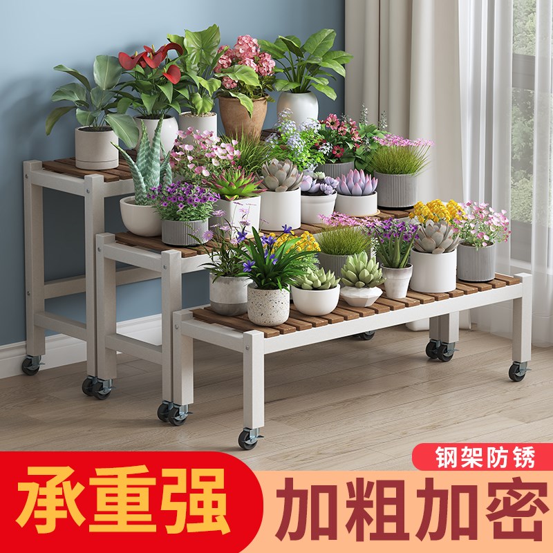 阳台置物架2025新款可移动带轮花架子客厅落地式铁艺实木花盆架