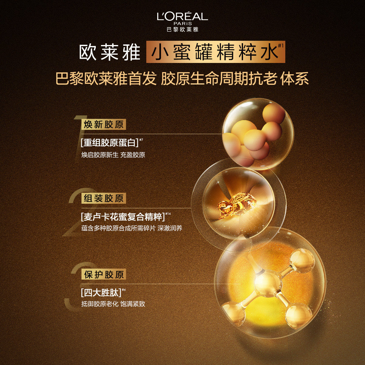 欧莱雅金致臻颜花蜜胶原精粹小蜜罐水爽肤水正品官方旗舰店130ml