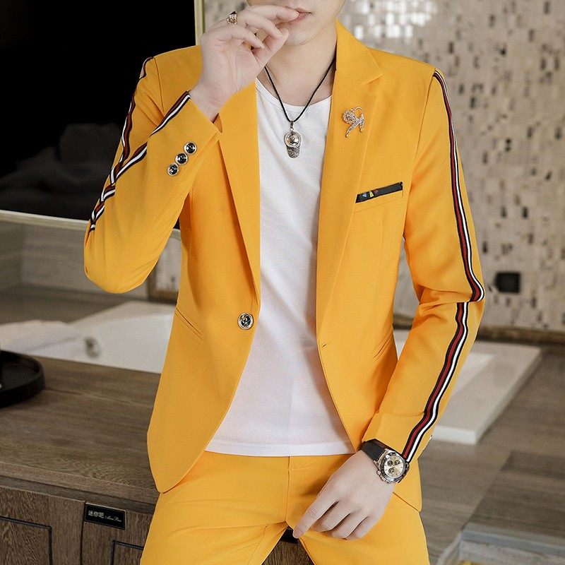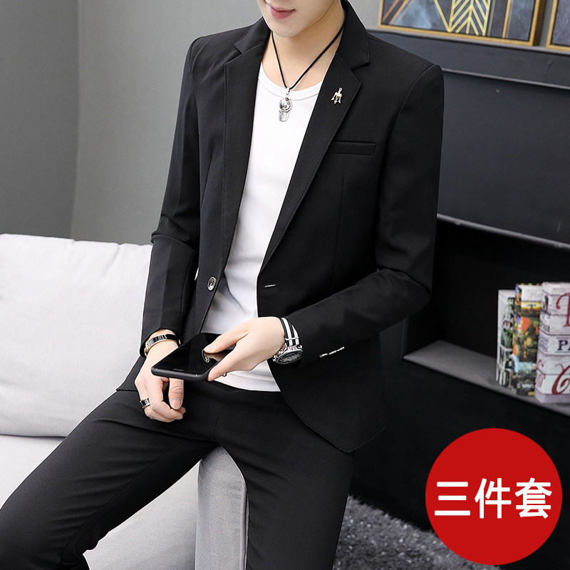 韩版休闲西服套装男春秋修身时尚小西装三件套英伦潮结婚礼服外套