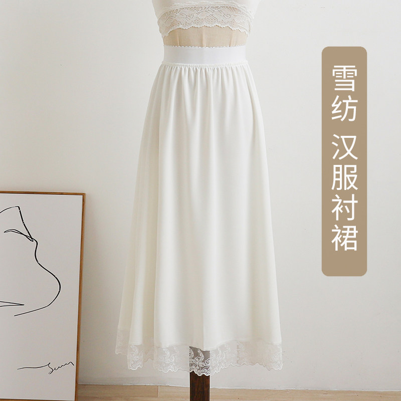 雪纺汉服衬裙白色蕾丝花边防走光内衬旗袍内衬裙马面打底裙半身
