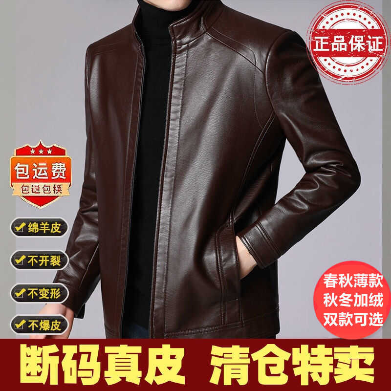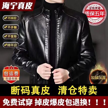 海宁正品真皮皮衣商务休闲爸爸装皮衣捡漏促销男士皮夹克秋冬新款