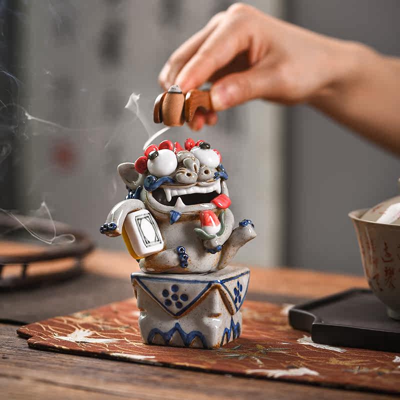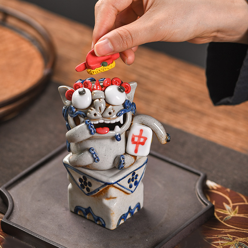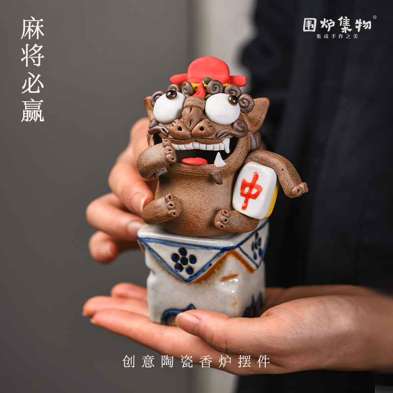 可爱麻将貔貅招财狮子香炉香插摆件陶瓷茶宠创意开业礼品镇宅皮丘