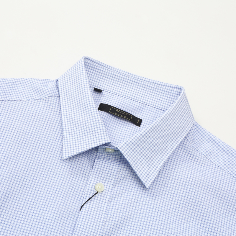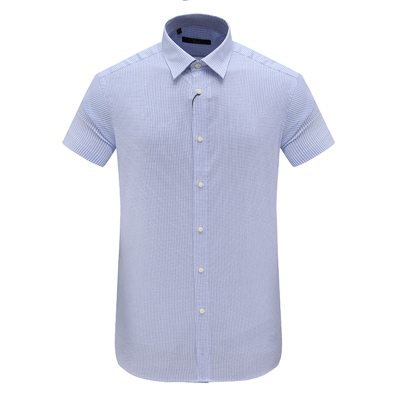 KL328凯LAI换季断码清仓夏季中年男士蓝白小格子80.1%棉短袖衬衫