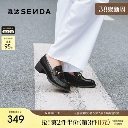 森达通勤鞋女春秋新商场同款马衔扣粗跟单鞋XQK01CA5