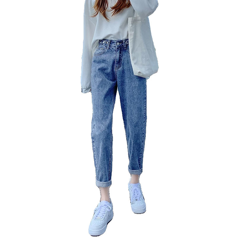 老爹高腰牛仔裤女哈伦裤萝卜裤子