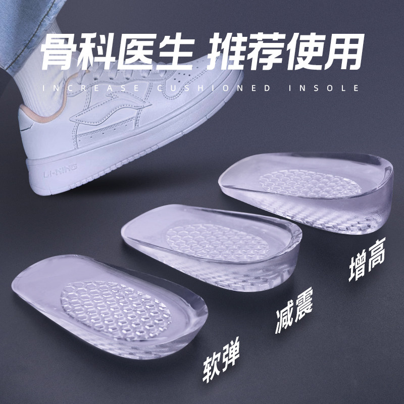 真硅胶内增高鞋垫超软后跟垫半垫女马丁靴久站不累脚男减震不塌陷