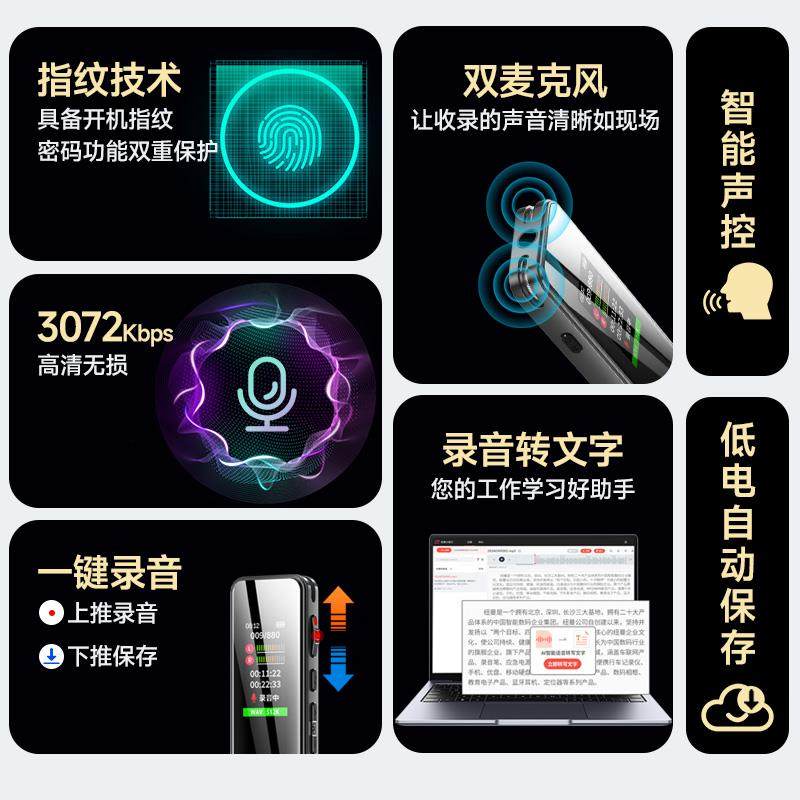 纽曼录音笔指纹加密录音转文字超长待机会议培训高清降噪