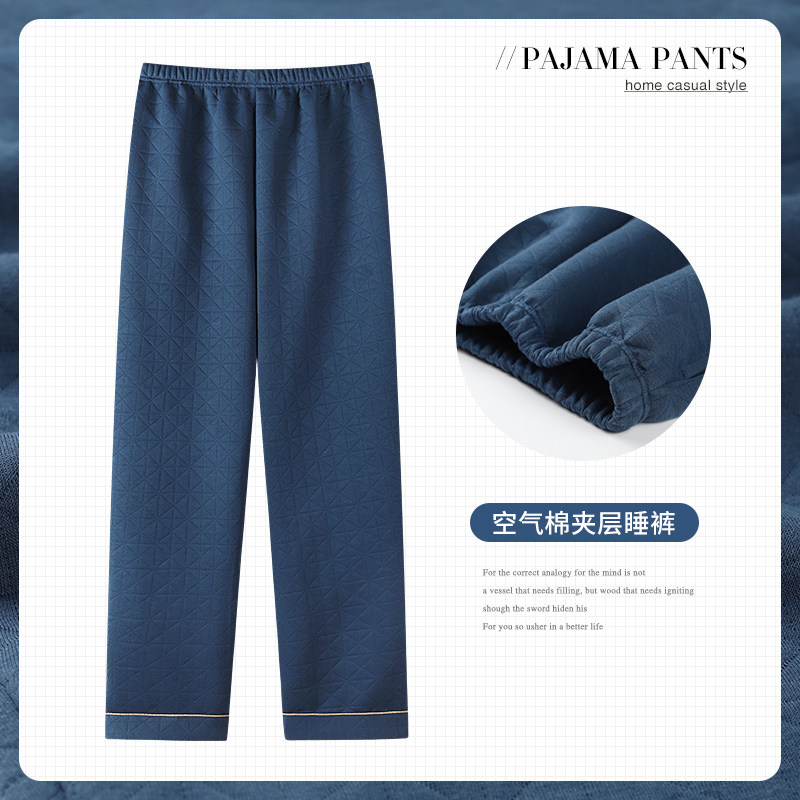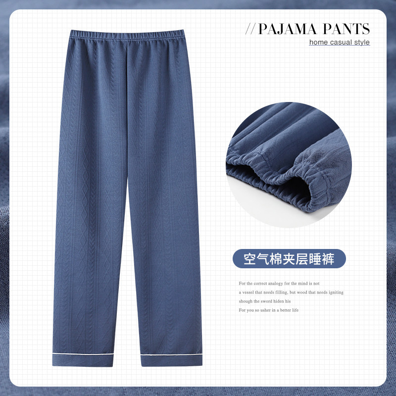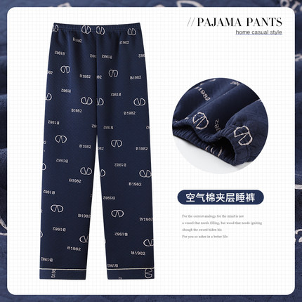 2025新款睡裤男士秋冬季纯棉加厚长裤冬天夹层空气棉加大码家居裤
