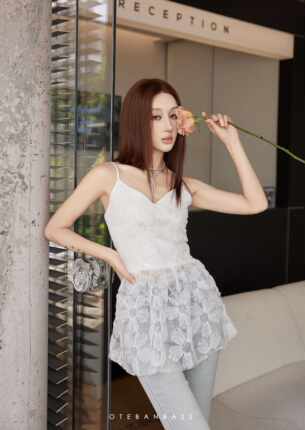 OTEBANBASS花朵亮片网纱吊带裙女蕾丝显瘦夏季修身法式甜辣背心裙