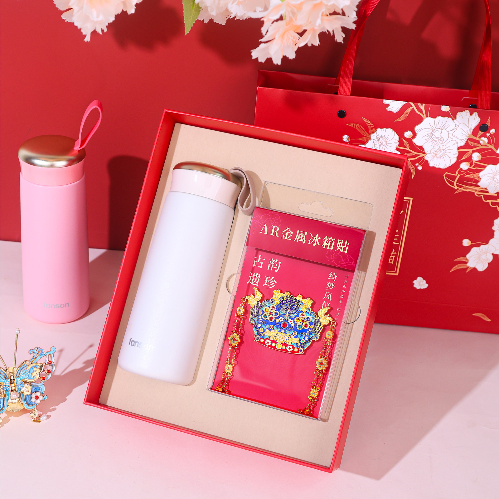 保温杯凤冠冰箱贴礼盒套装国潮创意礼物情人节礼物送女朋友送同学