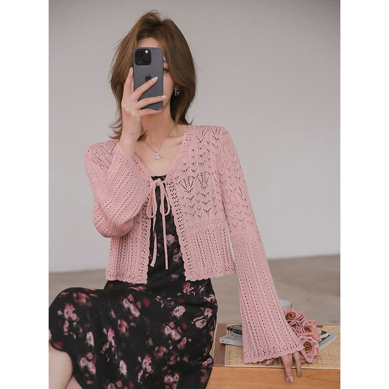 MosesQueen魔西女王系带缕空针织防晒开衫女夏季外搭罩衫外套上衣
