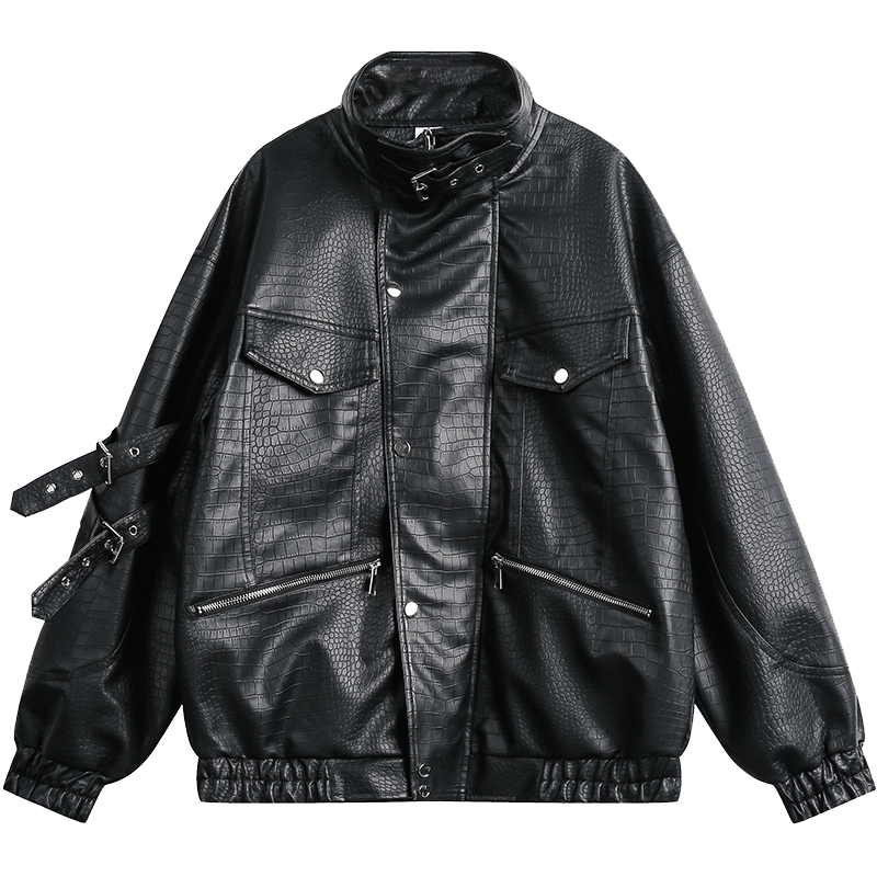 欧美嘻哈街头摇滚朋克机车pu皮衣夹克男士春季美式hiphop立领外套