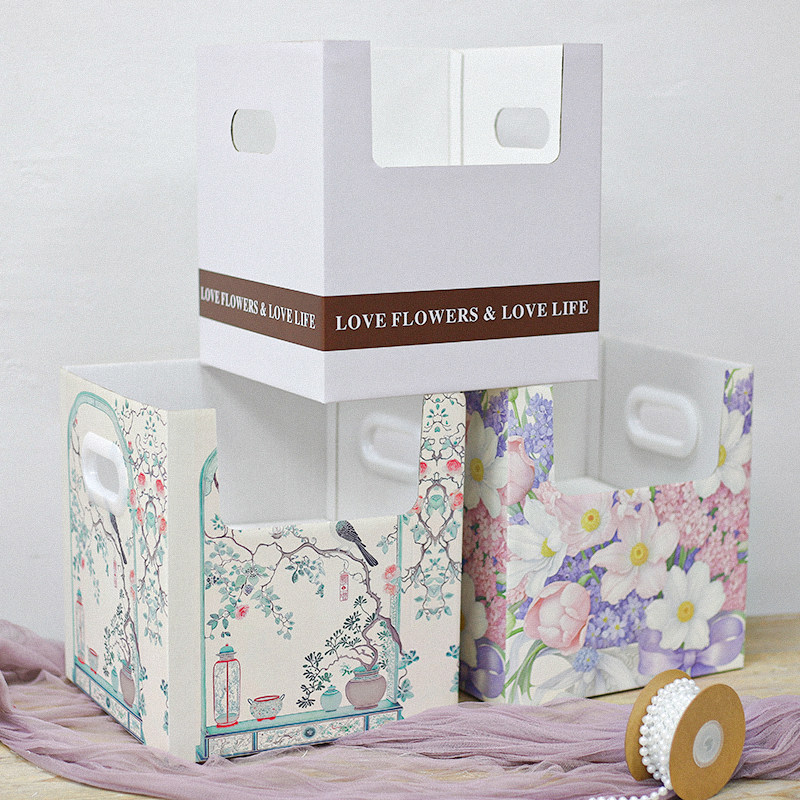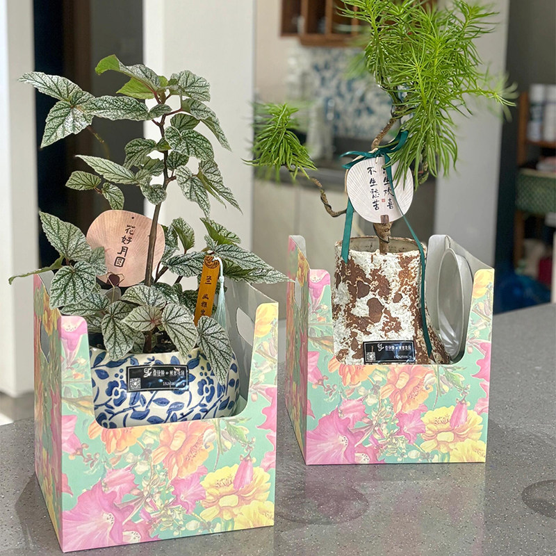 母亲节简约盆栽手提盒花艺插花空盒中式手提式礼物礼盒鲜花包装盒