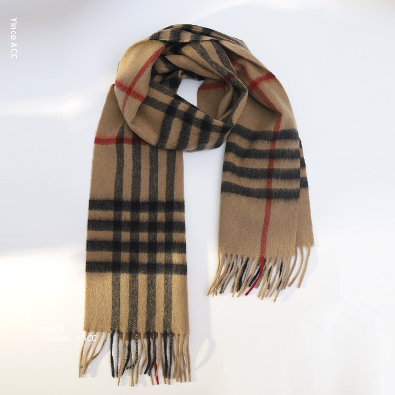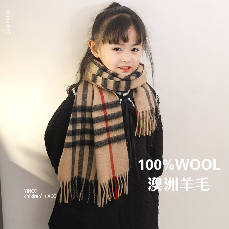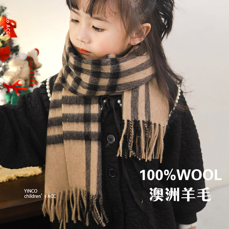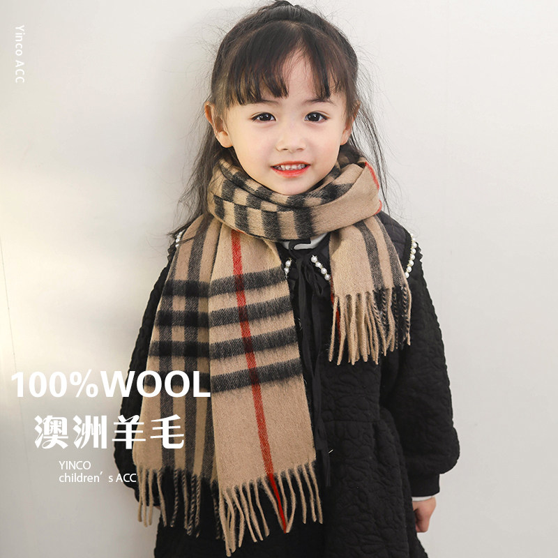 儿童羊毛围巾驼色复古英伦格子男女童宝宝秋冬季保暖韩版百搭咩咩