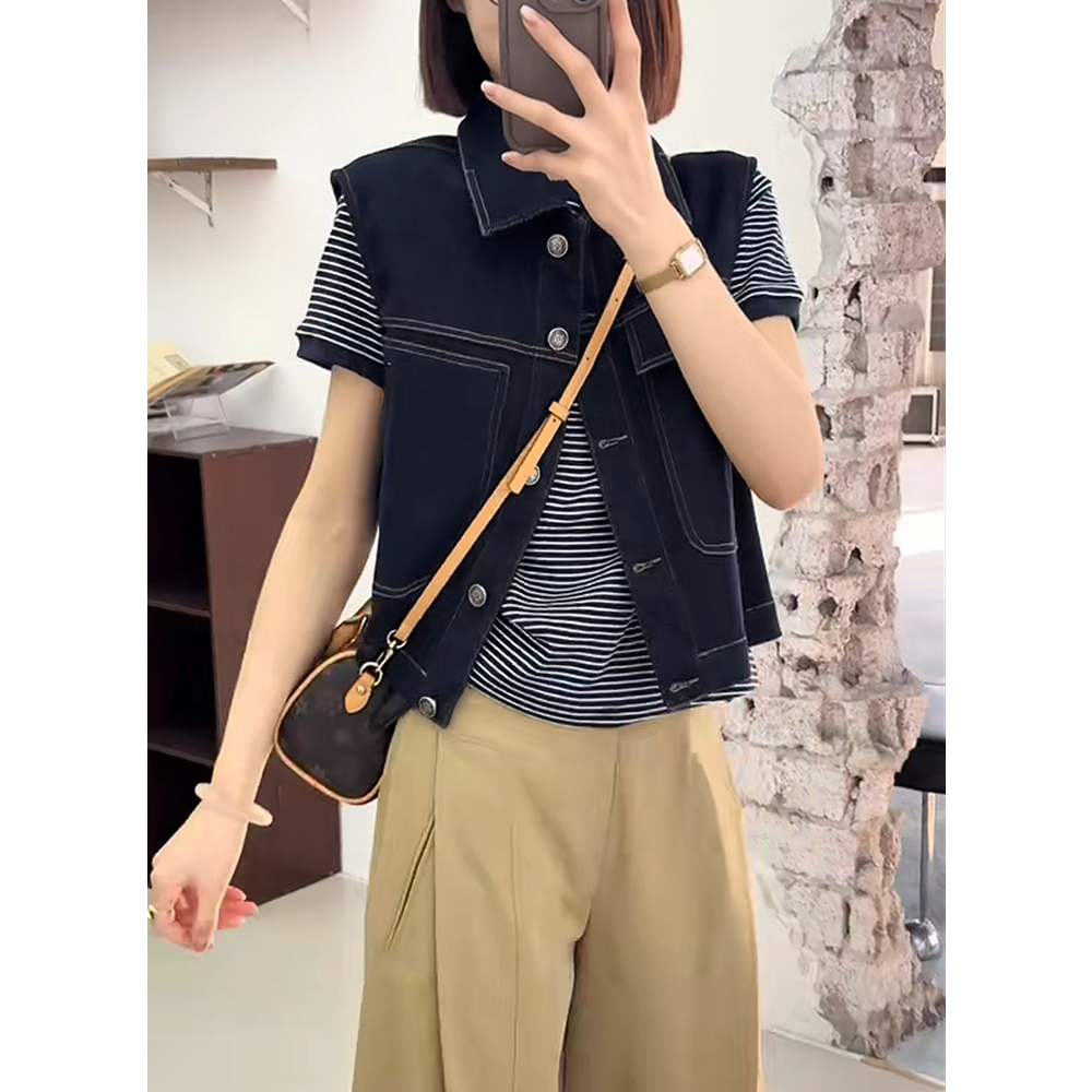 牛仔马甲女2025秋季新款无袖外套宽松设计感赛莱尔棉女上衣