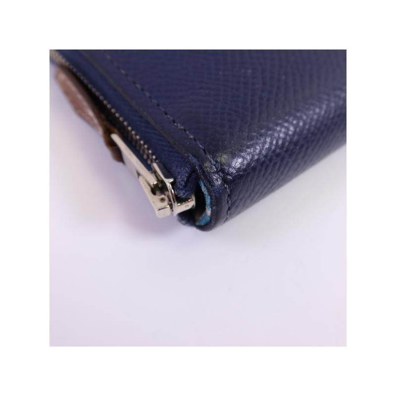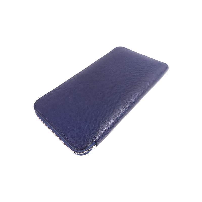 中古Hermes爱马仕女B级9新round圆形的牛皮长钱包蓝色