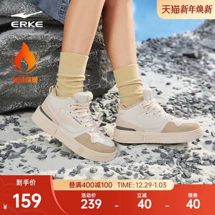 鸿星尔克高帮板鞋女加绒棉鞋休闲