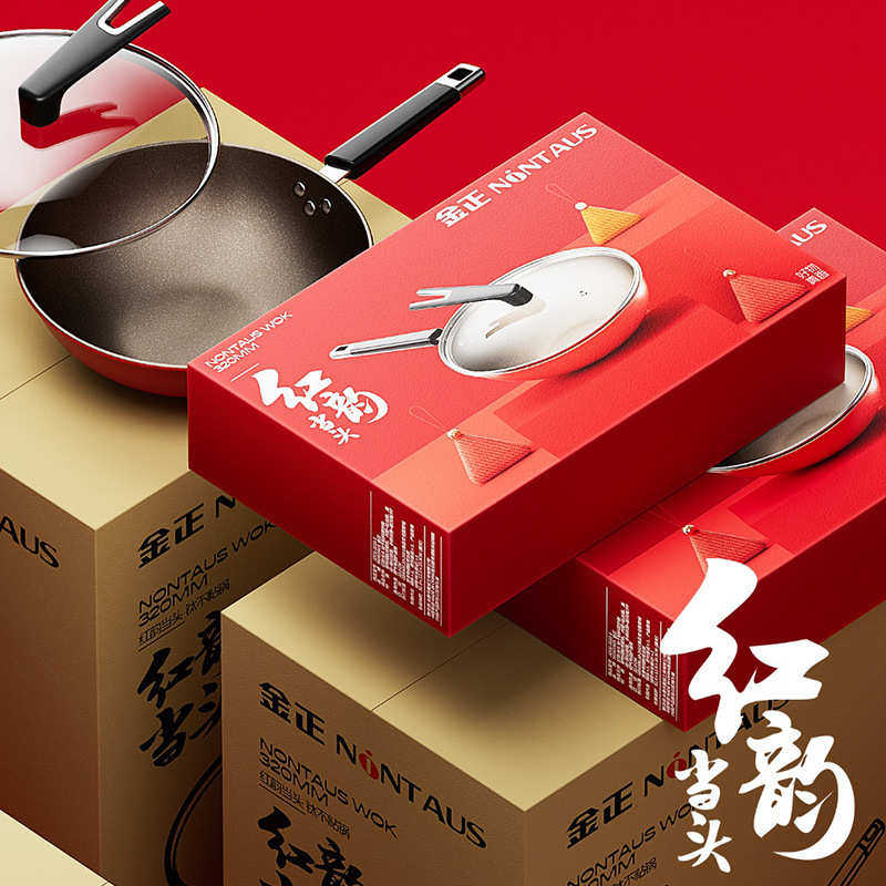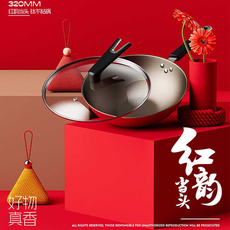 金正家用不粘锅钛锅厨房大容量炒菜锅多功能煎锅平底锅炒锅礼品锅