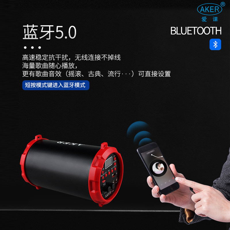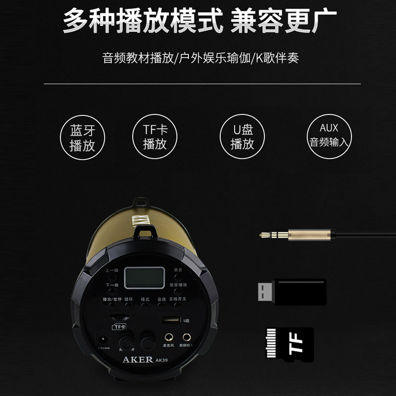 AKER/爱课新款AK39W多功能无线蓝牙扩音器便携式户外娱乐插卡音响