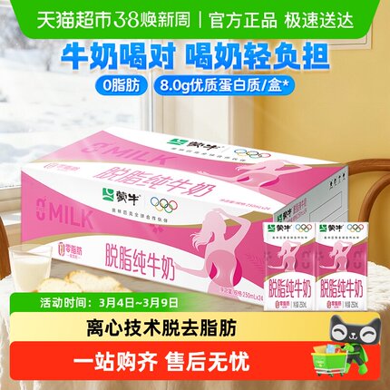 【百亿补贴】蒙牛脱脂纯牛奶250ml*24盒优质乳蛋白学养早餐