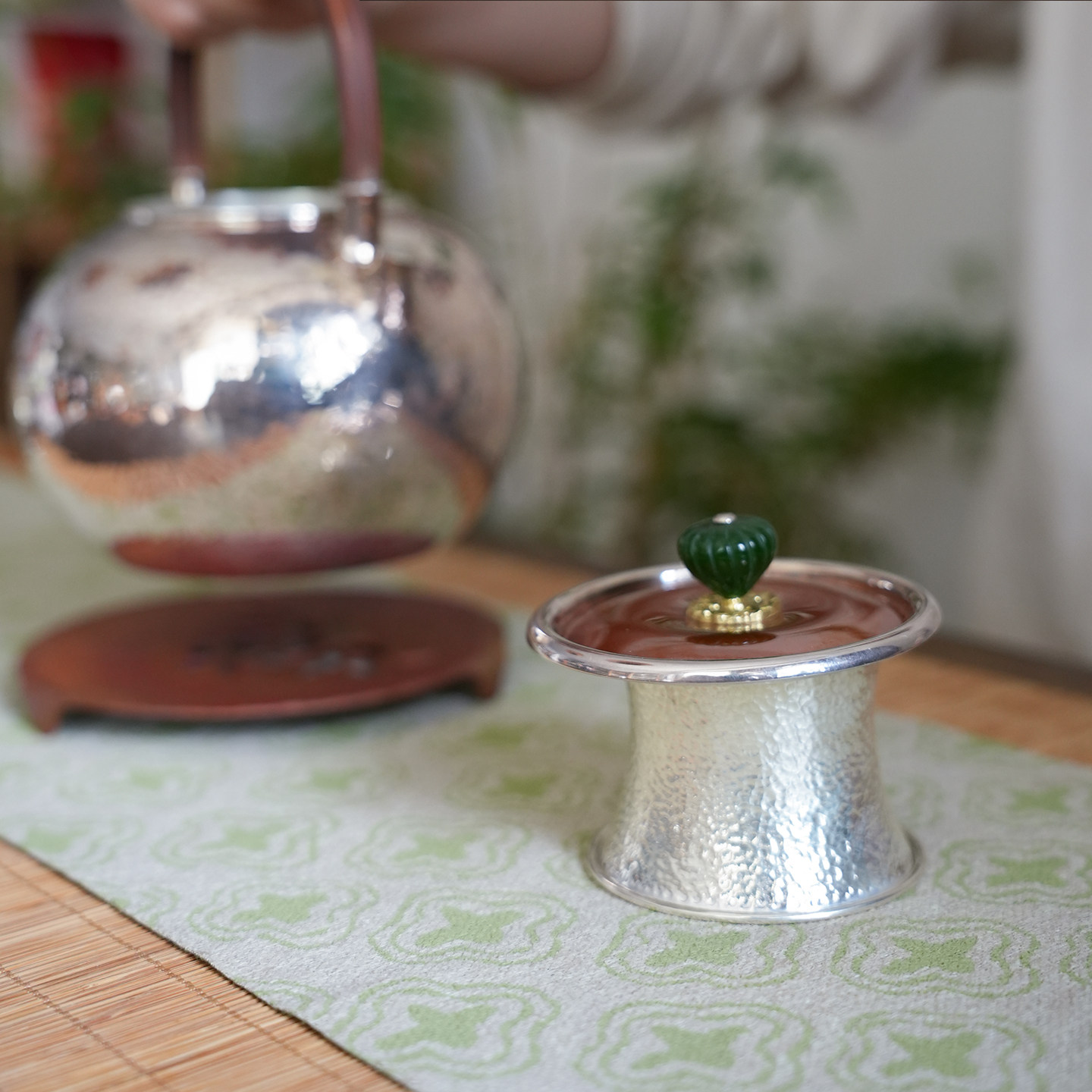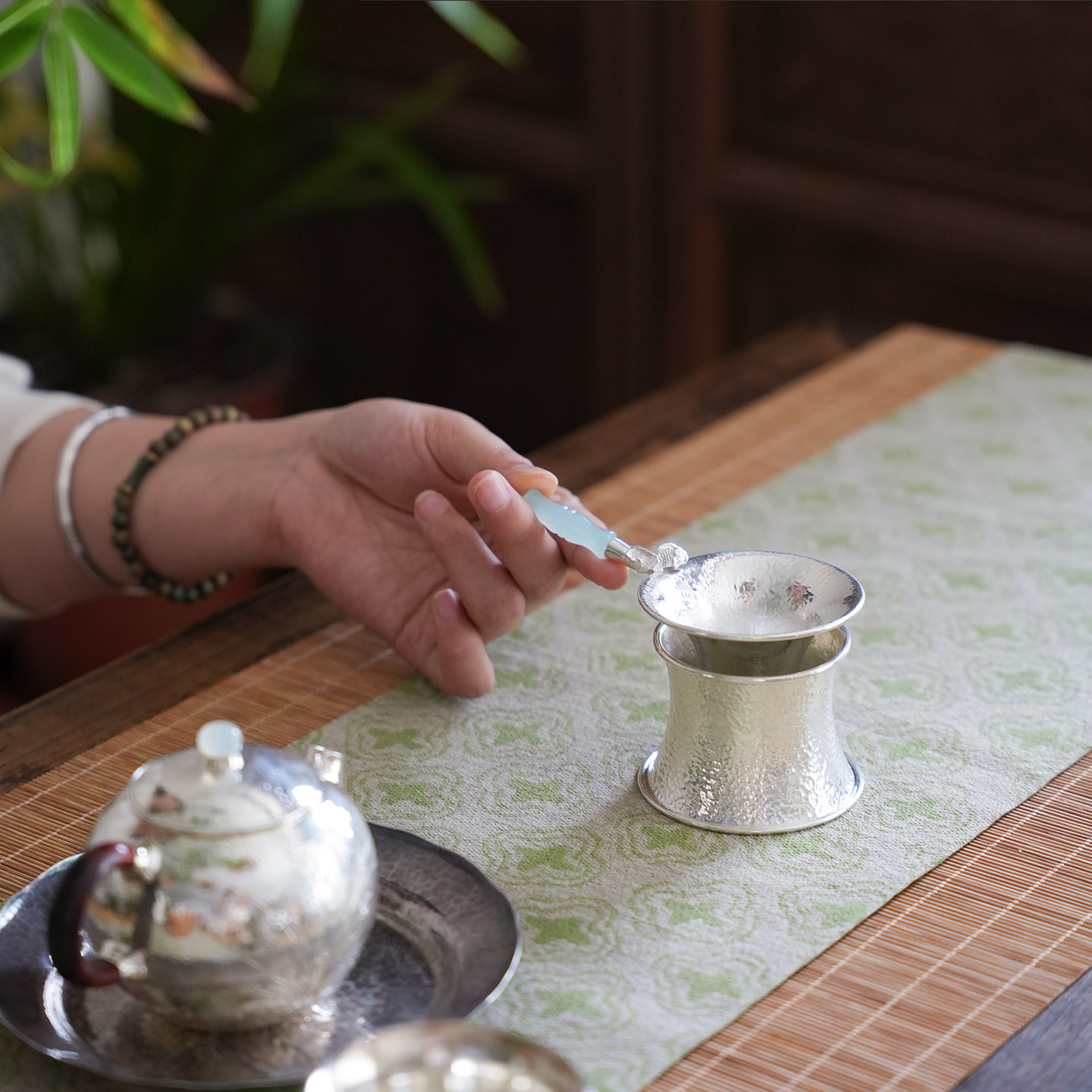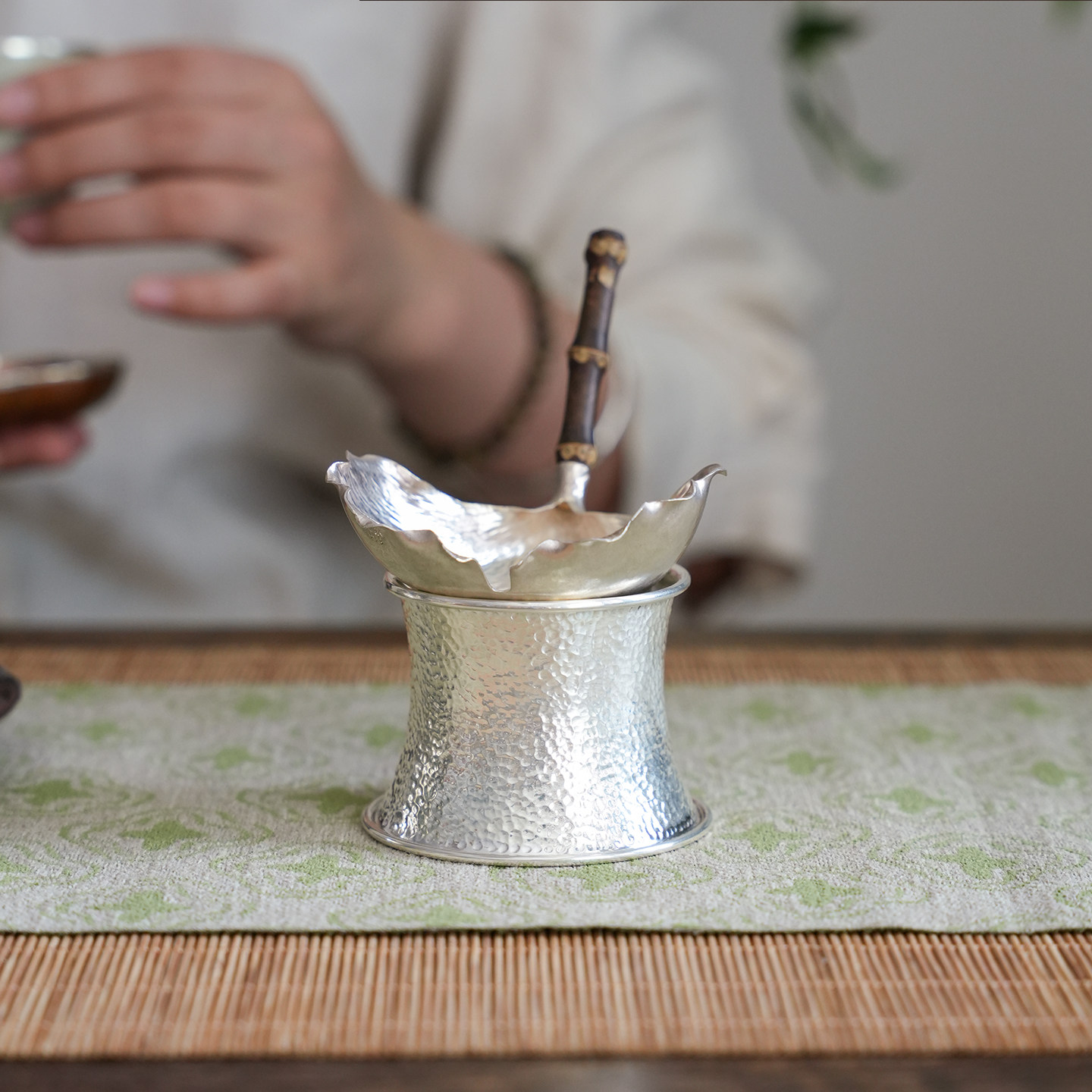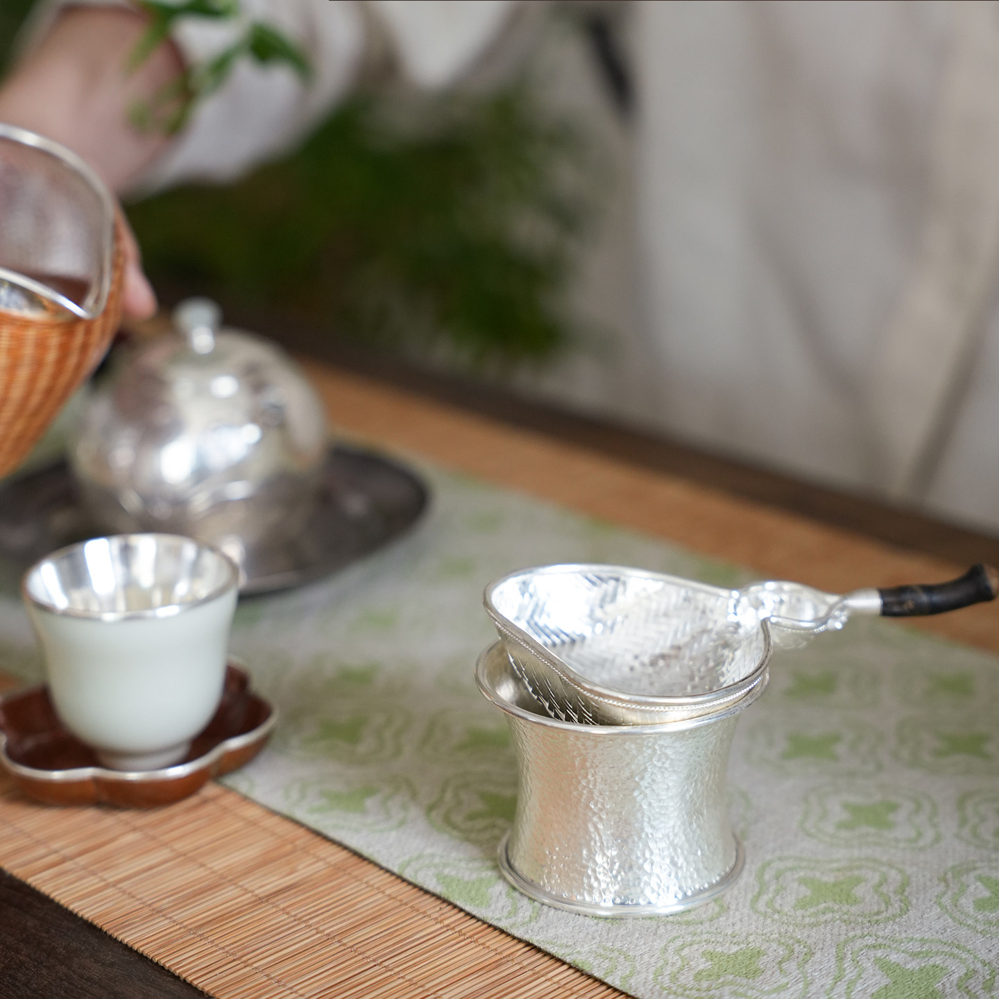 纯银时代 磨砂锤纹茶滤架托纯银家用茶器足银999茶漏托底座银茶具