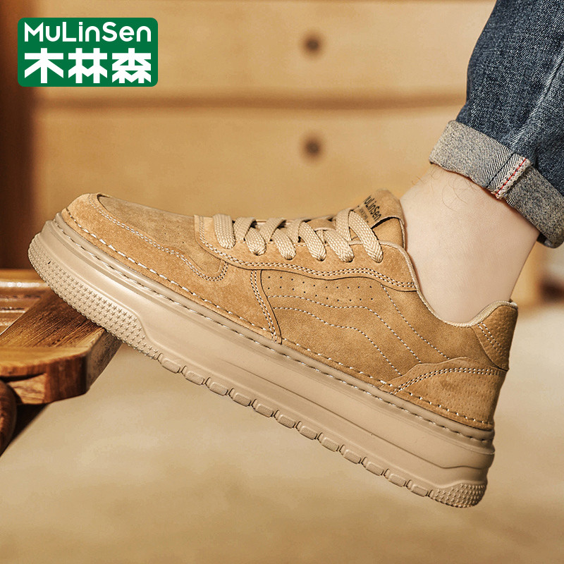 木林森男鞋冬季2025年新款休闲运动板鞋英伦复古厚底低帮工作皮鞋