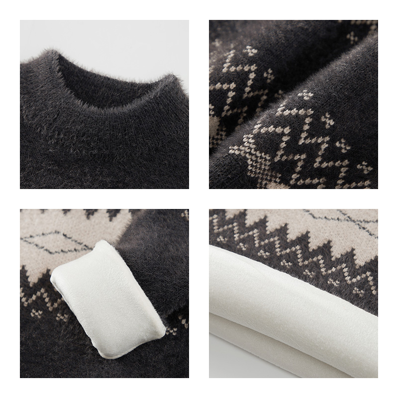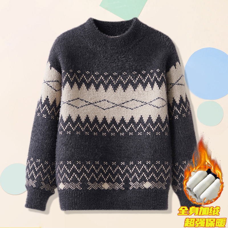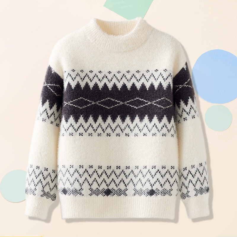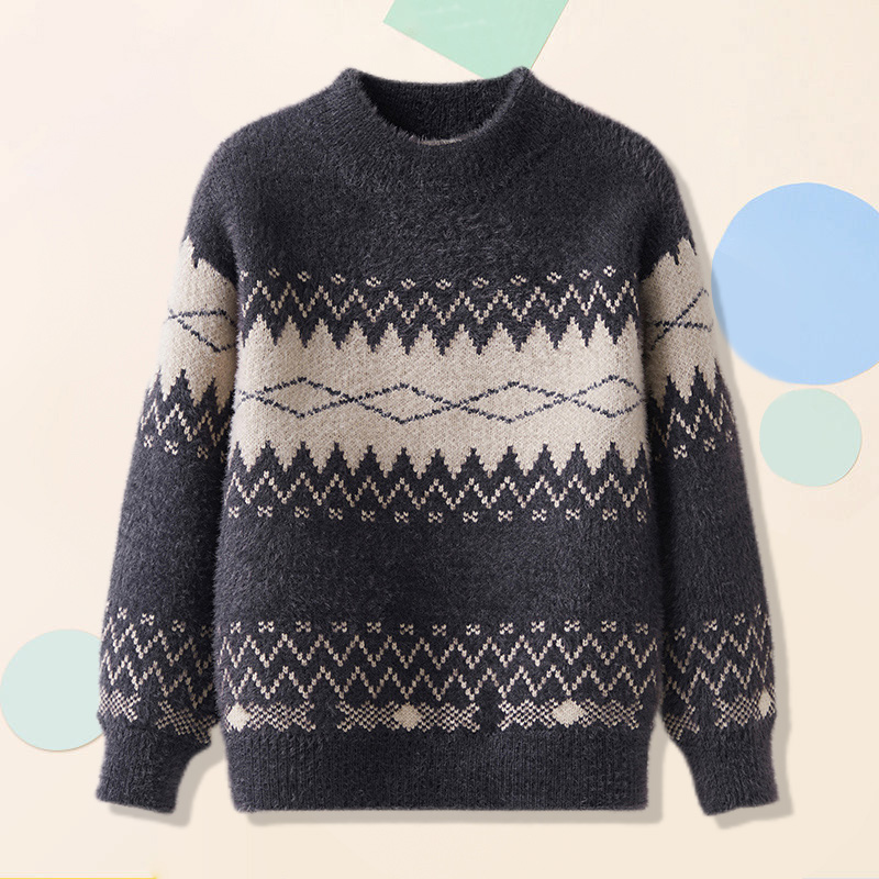 男童2025秋冬新毛衣几何装饰图案复古中大童百搭款加绒打底针织衫