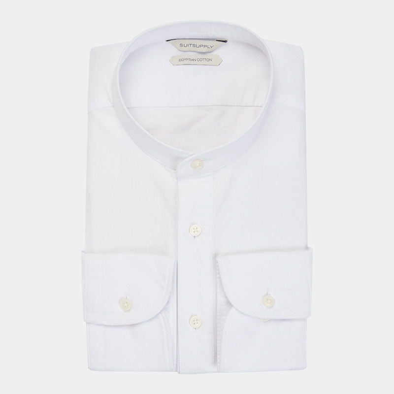 奥莱SUITSUPPLY-白色埃及棉平纹中式立领休闲男士衬衫