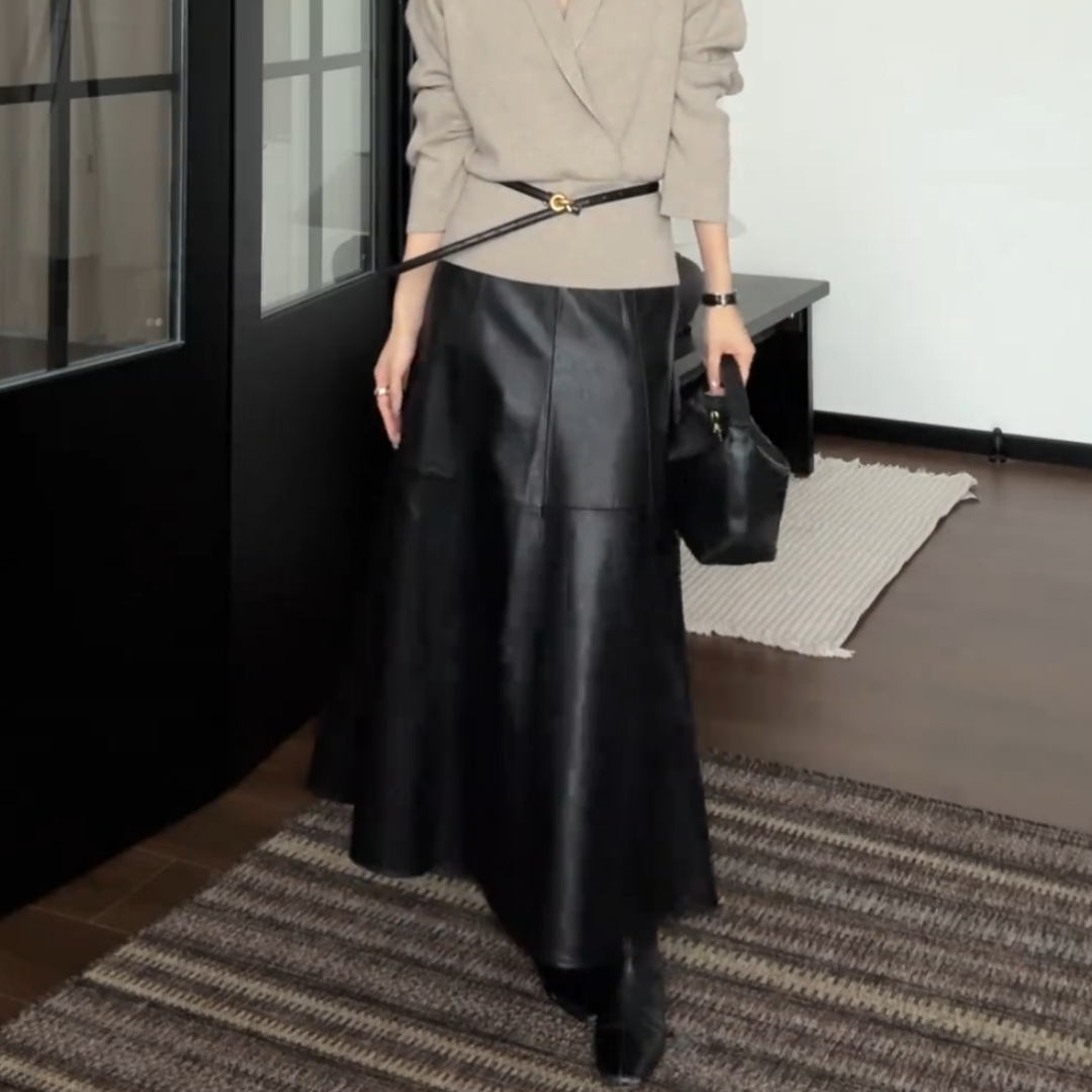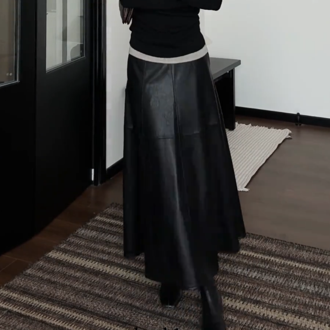 黑色百搭高级感显瘦皮质半身裙女秋冬简约时尚加厚舒适休闲长裙子