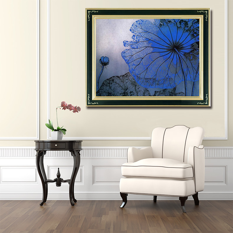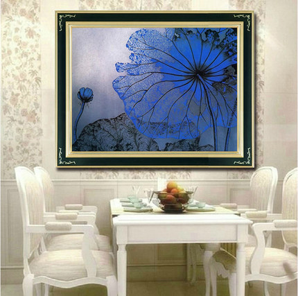 青飞3D贴钻画蓝色荷花钻石画5D十字绣圆钻花卉钻石绣卧室客厅包邮