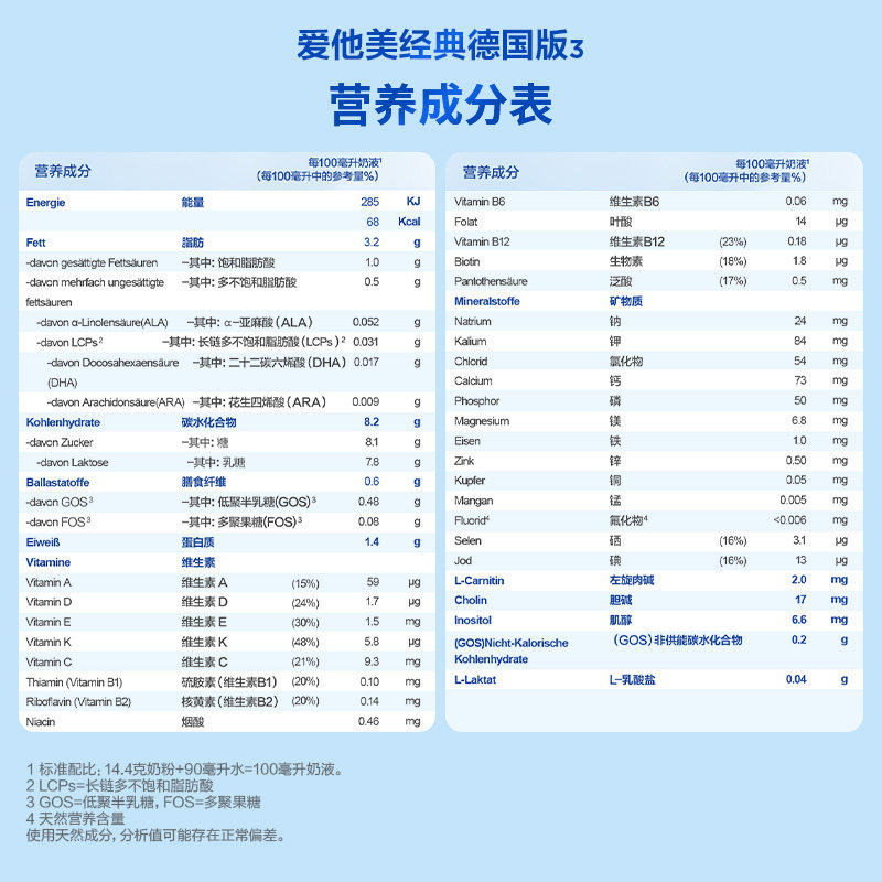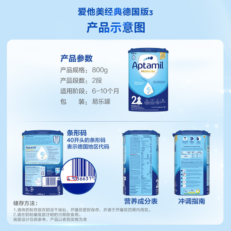 【百亿补贴】德国爱他美2经典版婴幼儿牛奶粉官方旗舰店德爱蓝罐
