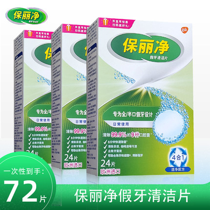 保丽净假牙清洁片72泡腾清洗正畸保持矫正器牙套清细菌清新口气