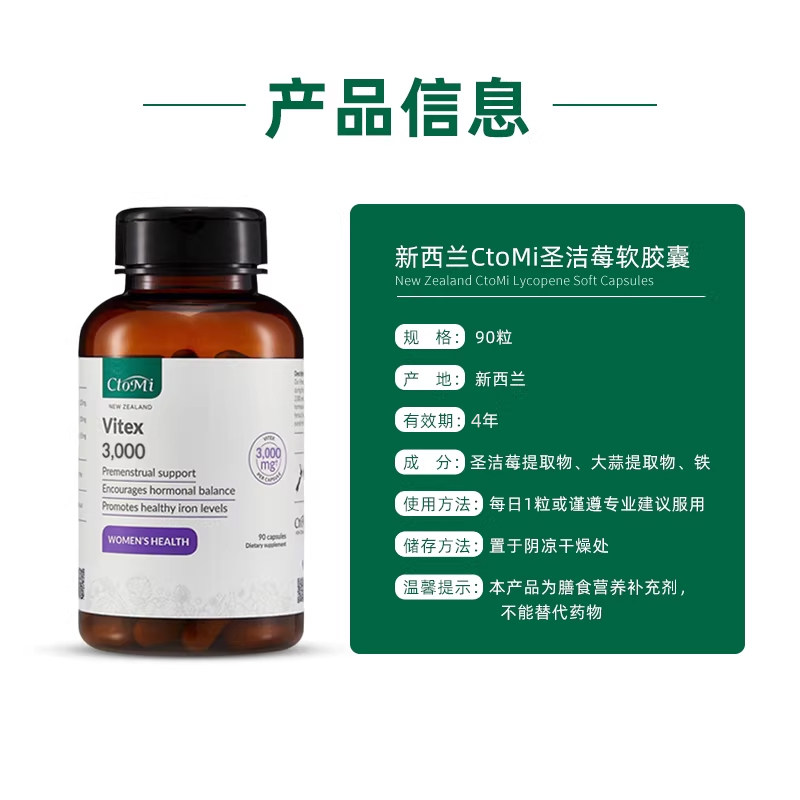新西兰CtoMi圣洁莓胶囊卵巢保养孕酮月经规律植物提取物促黄体酮