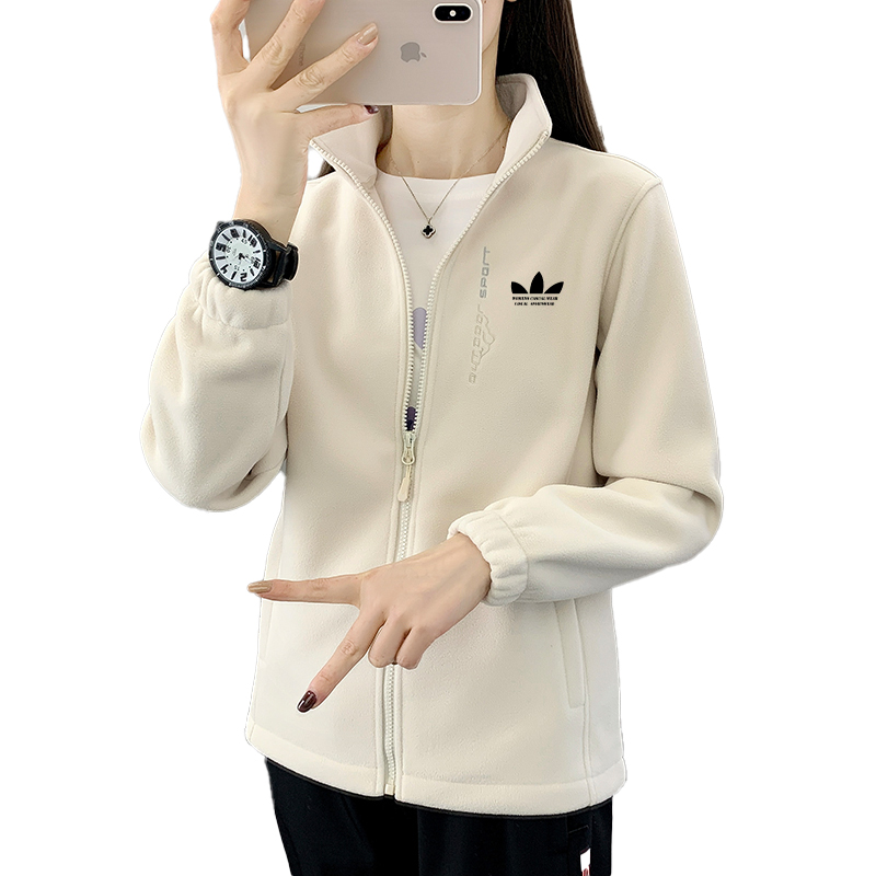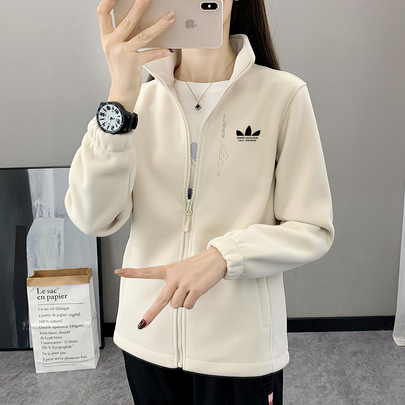 三叶草摇粒绒短外套女秋冬抓绒衣