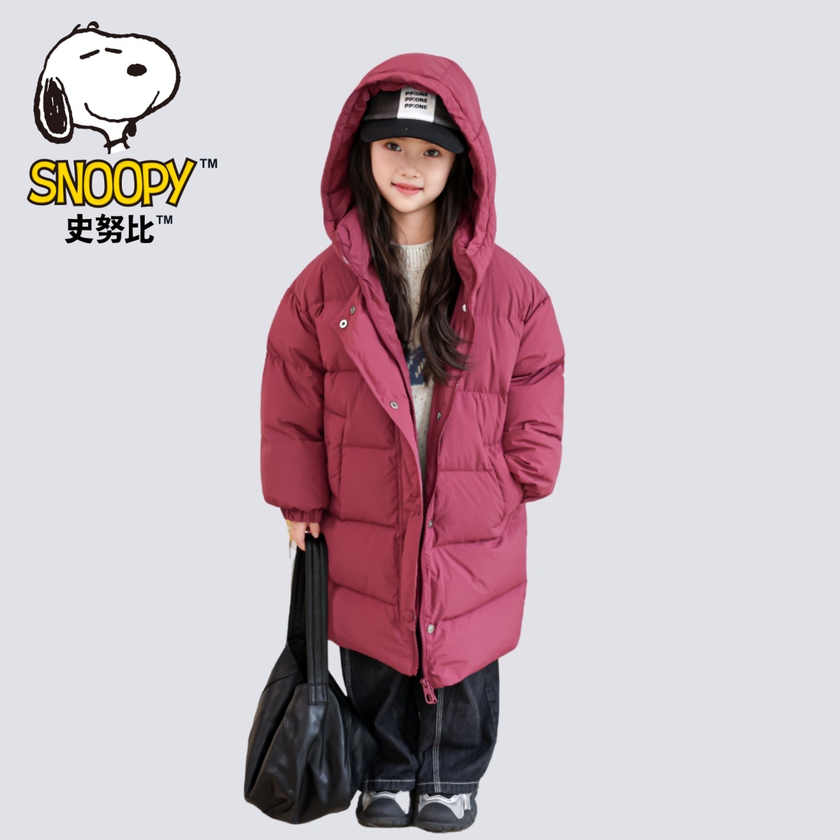 史努比儿童装羽绒服2025冬季新款中长款过膝男女童加厚白鸭绒外套