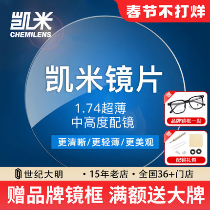 韩国1.74凯米U6金罡防蓝光散光镜片超薄官方旗舰1.67高度近视配镜