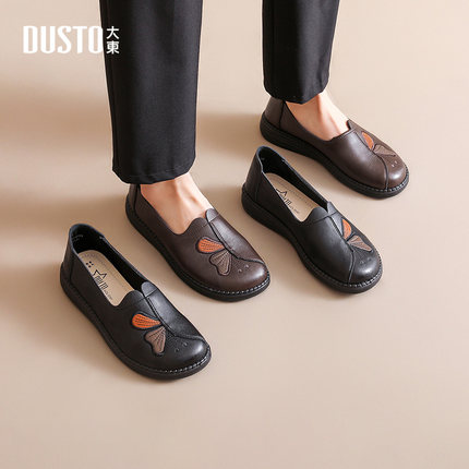 大东妈妈鞋女鞋2025春新款时尚圆头刺绣老人一脚蹬软底平底鞋5015