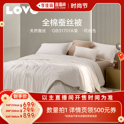 【李佳琦直播间】罗莱生活LOVO乐蜗蚕丝被芯全棉二合一被可水洗