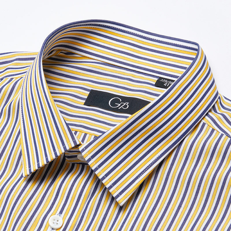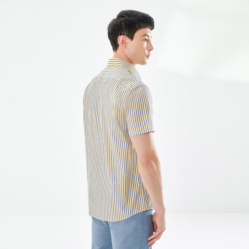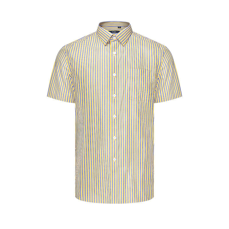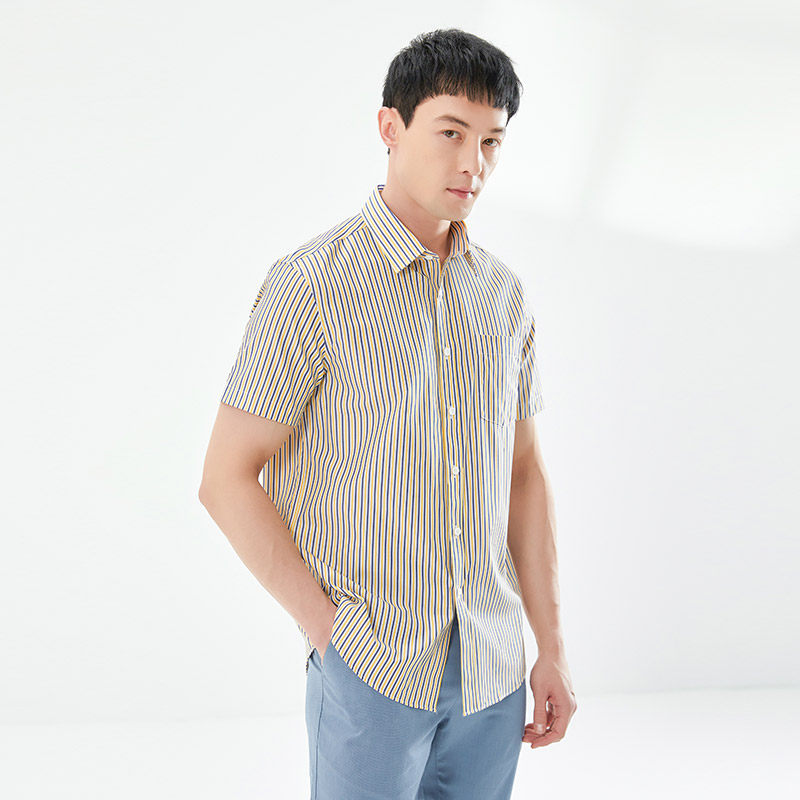 乔治白夏季男士纯棉短袖衬衫休闲撞色竖条纹衬衣半袖上衣有口袋