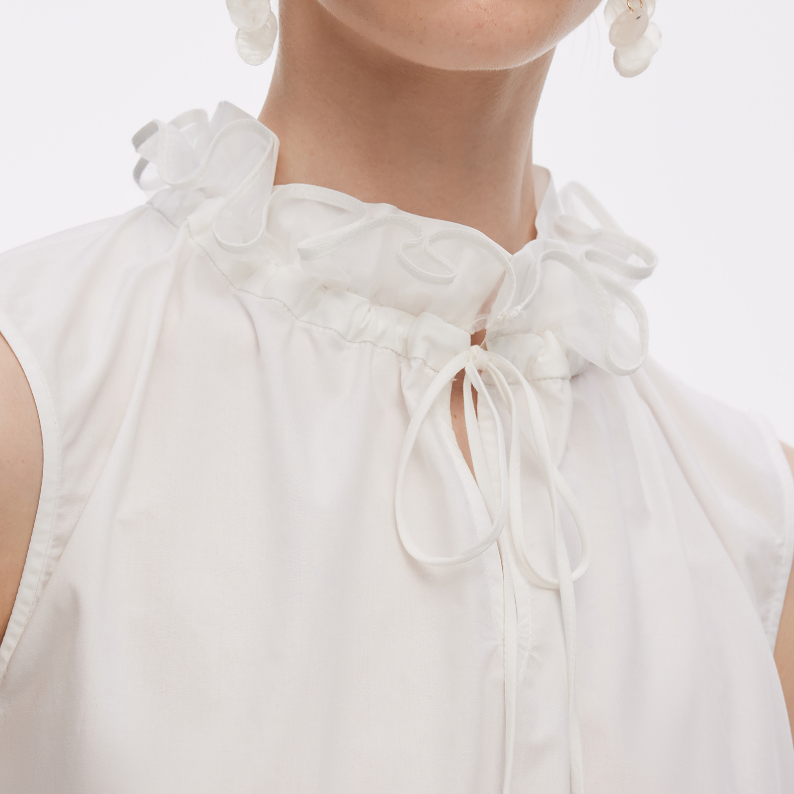 歌莉娅白色衬衫女夏季通勤穿搭2025新款木耳边无袖衬衣1E9L3A130