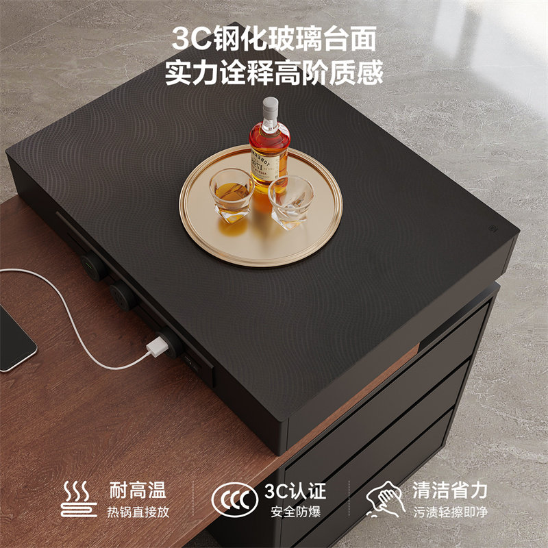 全友家居中古风岛台餐桌一体家用可伸缩客厅钢化玻璃饭桌椅组合
