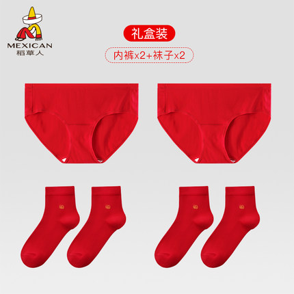 稻草人女士内裤春节本命年龙年大红底裤莫代尔三角裤袜子礼盒套装